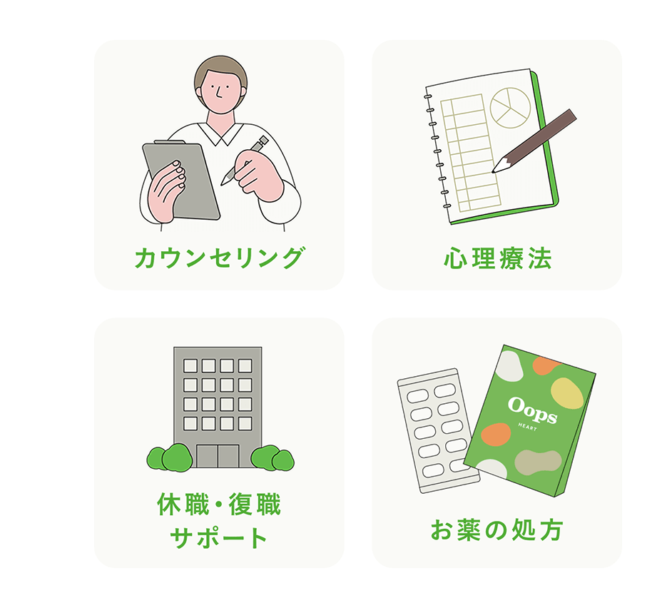 Oopsと提携している医療機関の精神科医が診察します。