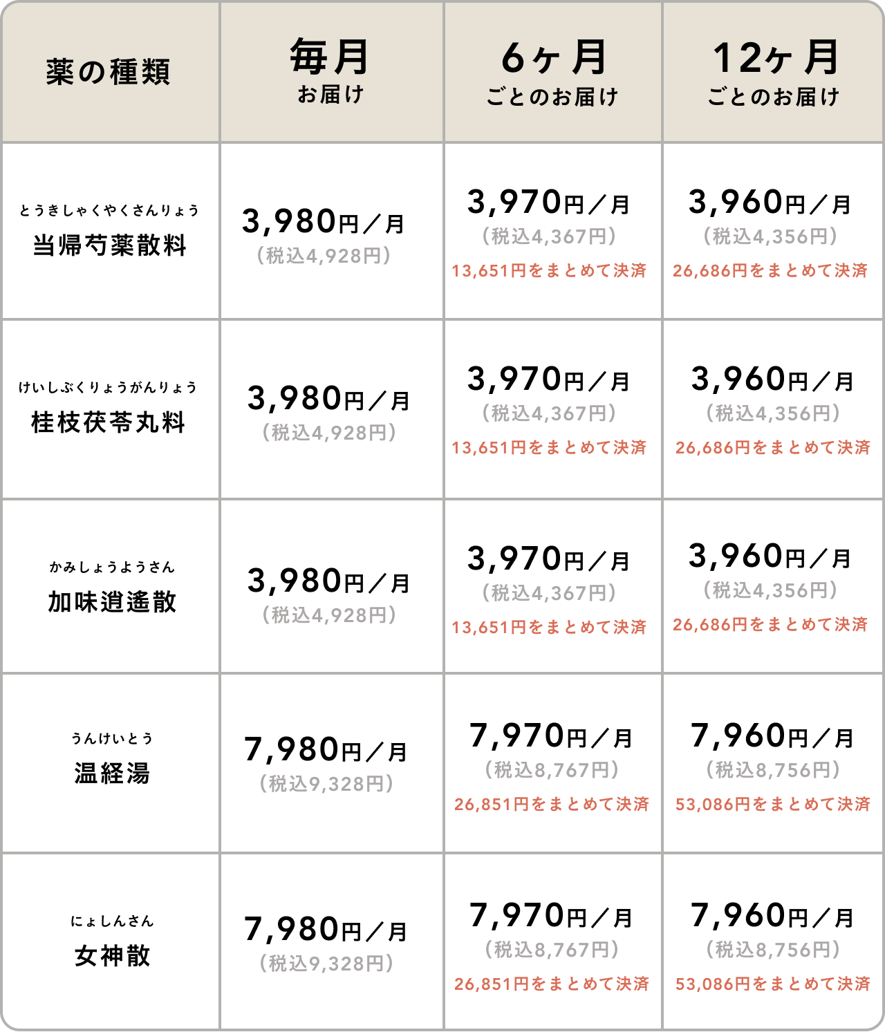 - 当帰芍薬散料 4,928円 (税込5,421円)